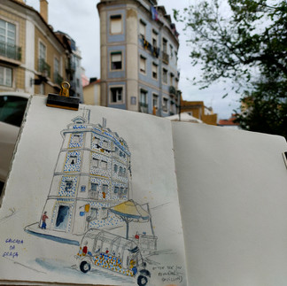 L'architecture à Lisbonne nous a donné du fil à retordre : entre les motifs parfois complexes des azulejos et des calades (ces pavés de granit et de basalte qui décorent les sols), les arcades et les monuments de style manuélin, on a pas chômé... et les stagiaires ont (presque) tout compris à la perspective !